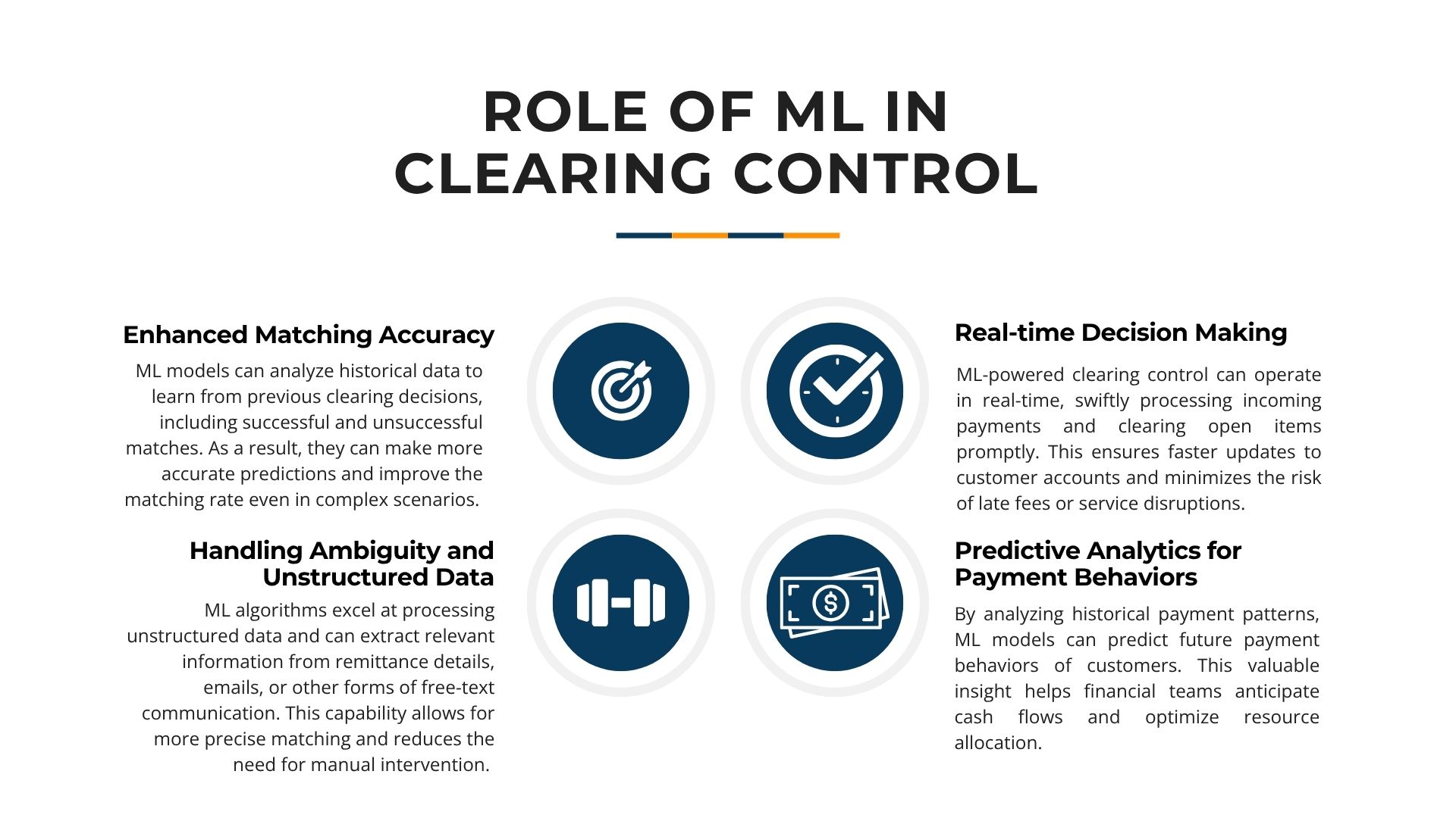 • Better Decision Making: ML-driven clearing control empowers organizations to make data-driven decisions, resulting in improved financial planning and strategy.